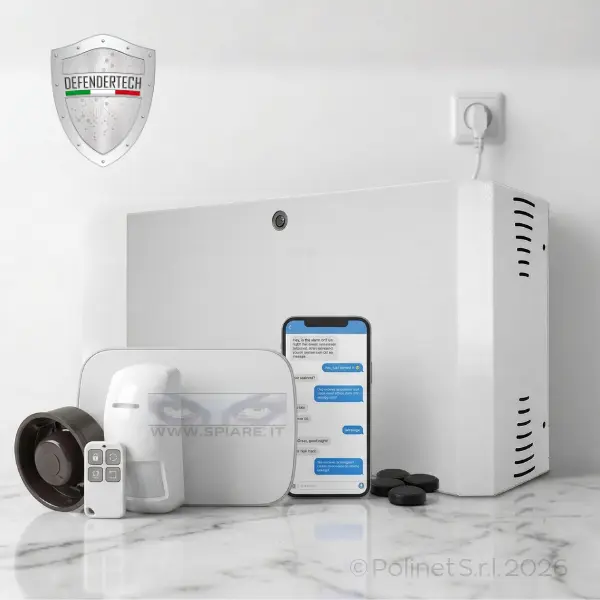 Kit completo plug & play: nebbiogeno MF-50 + Hub WiFi/App incluso: controllo remoto e notifiche smartphone in tempo reale. Gestione completa via App Defendertech oltre al radiocomando. Monitoraggio da qualsiasi luogo, senza abbonamenti.